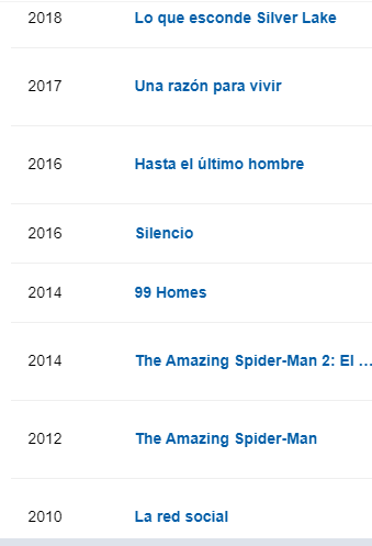 Estas son todas sus filmografías desde el 2007 hasta el 2020.